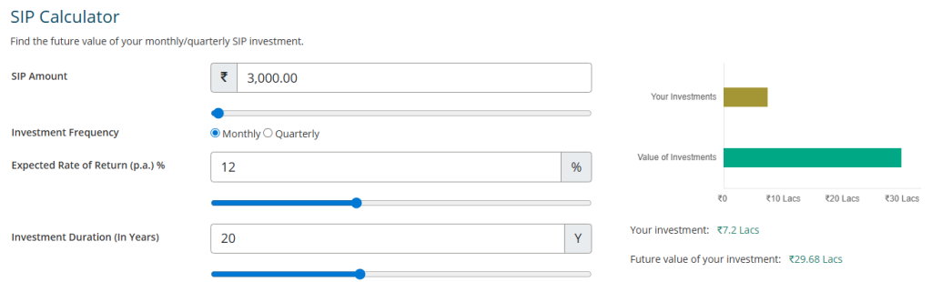 If you invest ₹3000 from the age of 25 to 45, it will result in ~29 lakhs.